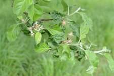 Das vegetative Pflanzengewebe ist zwar widerstandsfähiger gegen Frostschäden, doch starke Fröste können ganze Knospen oder Triebe vernichten. Das Blattgewebe kann auch bereits durch milde Fröste geschädigt werden. Diese verursachen oft ein Kräuseln der Blattspreite (Abb. 3).